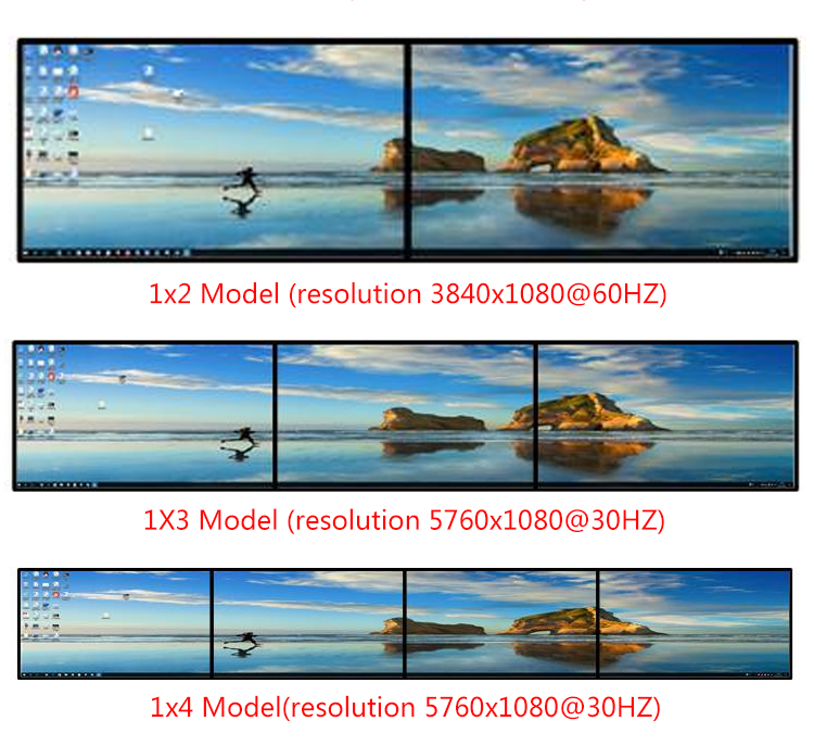 采用模塊化設(shè)計(jì),單機(jī)可定制2至24畫(huà)面拼接,如常用的1x2畫(huà)面拼接、2x2四畫(huà)面拼接、2x3或3x2六畫(huà)面拼接、2x4八畫(huà)面拼接、3x3九畫(huà)面拼接、2x5十畫(huà)面拼接、3x4十二畫(huà)面拼接等。