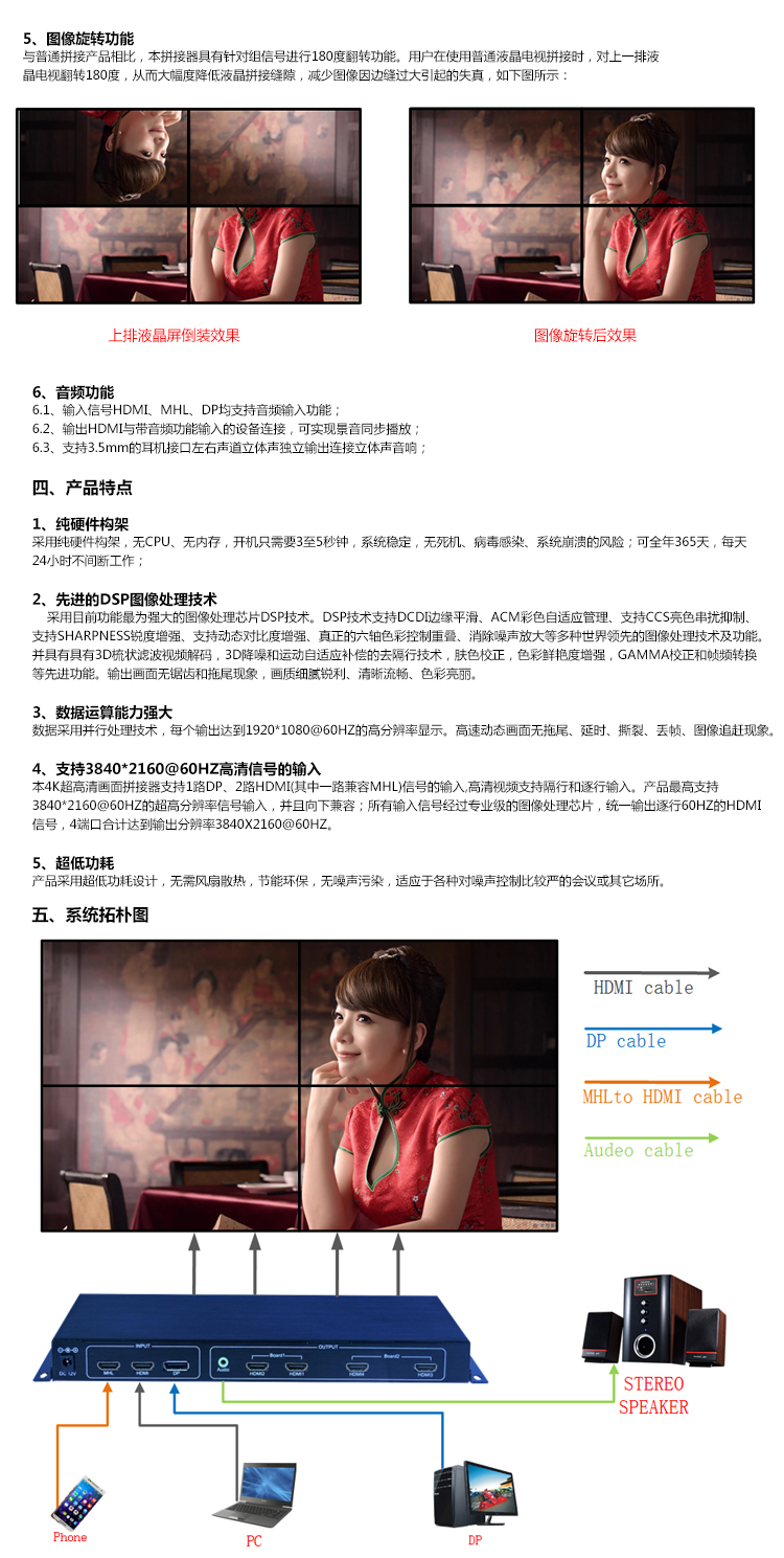 4、支持3840*2160@60HZ高清信號(hào)的輸入